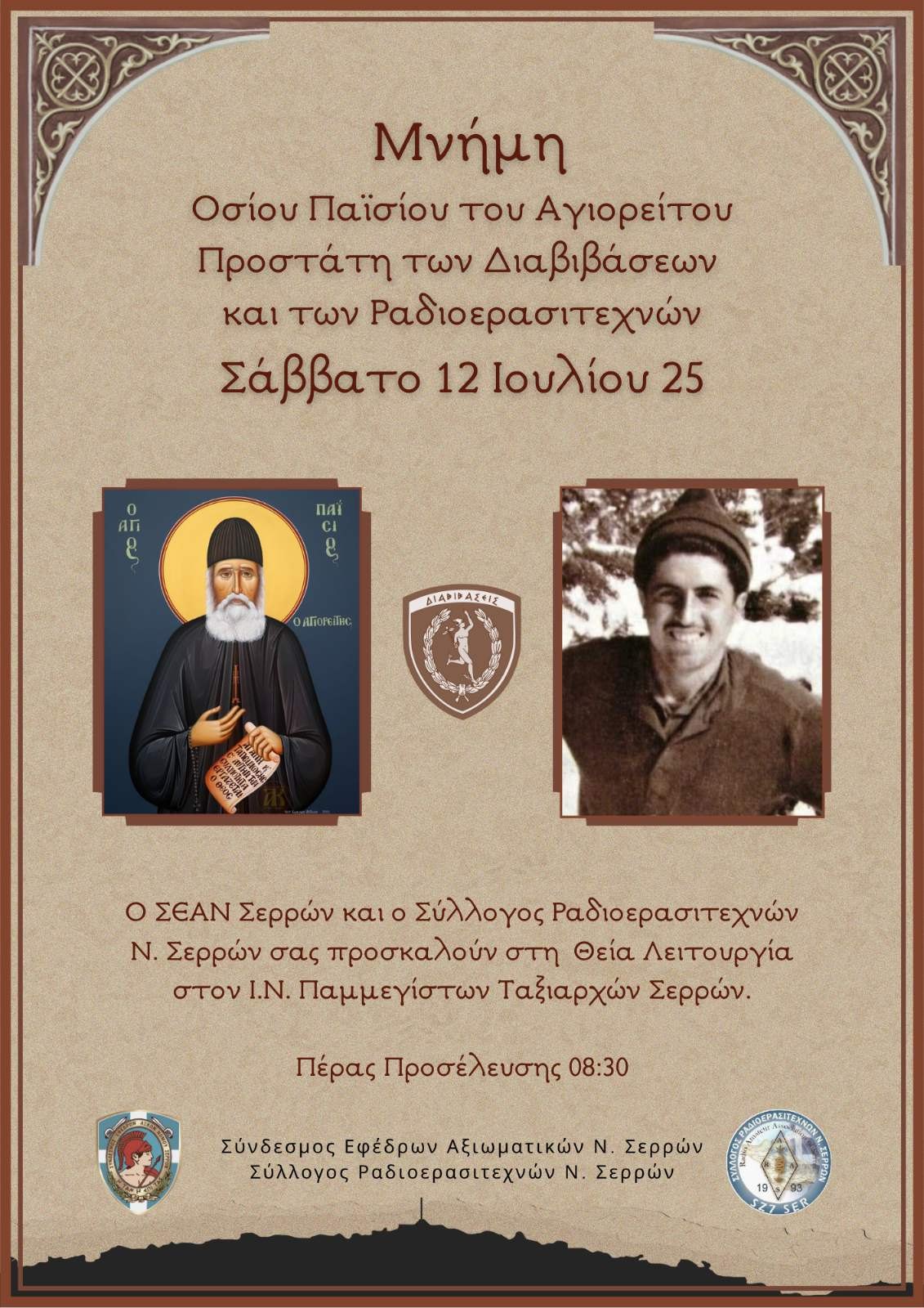 Το Σάββατο 12 Ιουλίου 2025, τιμούμε τη μνήμη του Οσίου Παϊσίου του Αγιορείτου, προστάτη των διαβιβάσεων και των ραδιοερασιτεχνών.